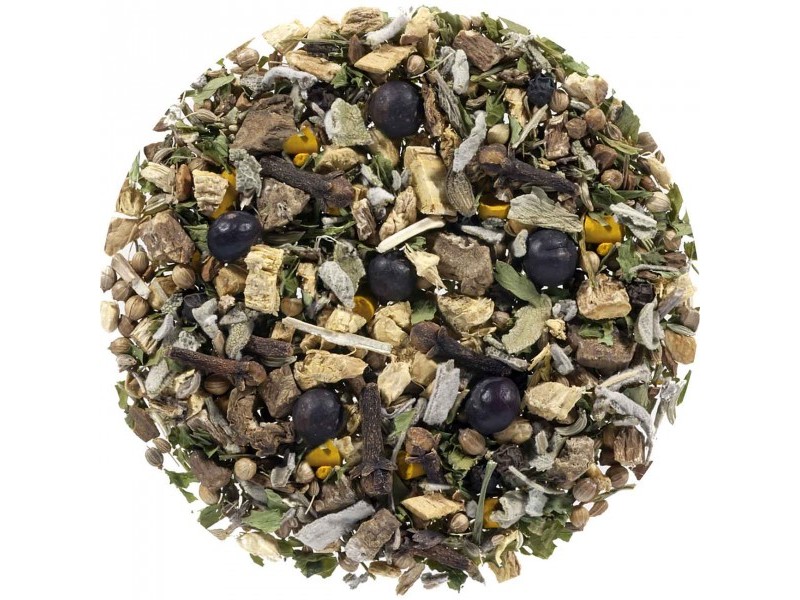 Zoethout, klit, gember, kaneel, koriander, anijs, gember, jeneverbessen, venkel, dande.