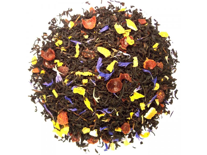 IngredientenZwarte Thee, aroma, rozenbottelschil, citrusschil, zonnenbloemblad, korenbloemblad.
