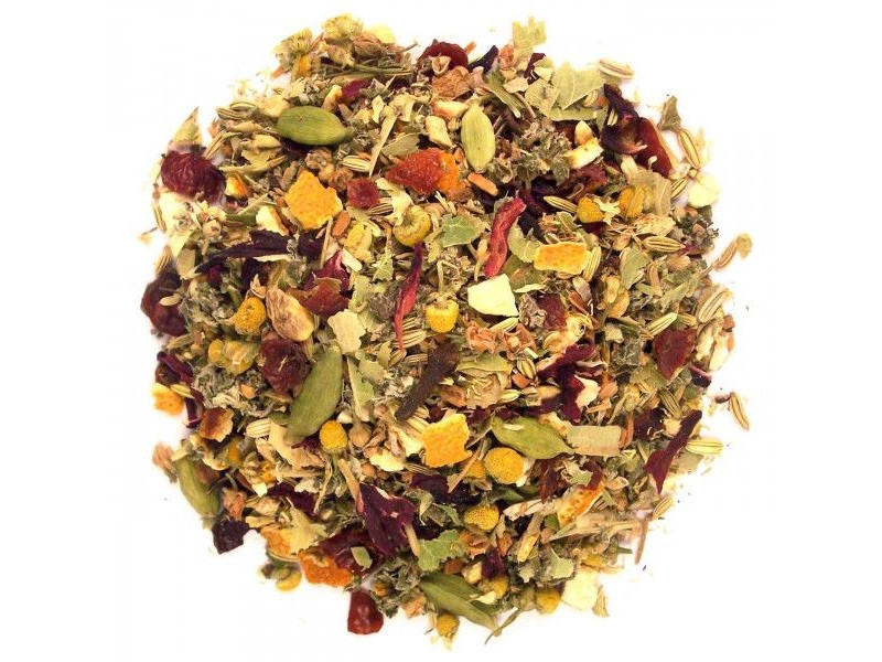 Venkel, gember, sinaasappelschil, hibiscus, kaneel, frambozenblad, kamillebloemen, rozebottel, lindebloesem, kardemom, zwarte peper, kruidnagel, zoethout*, natuurlijk sinaasappelaroma, aroma.