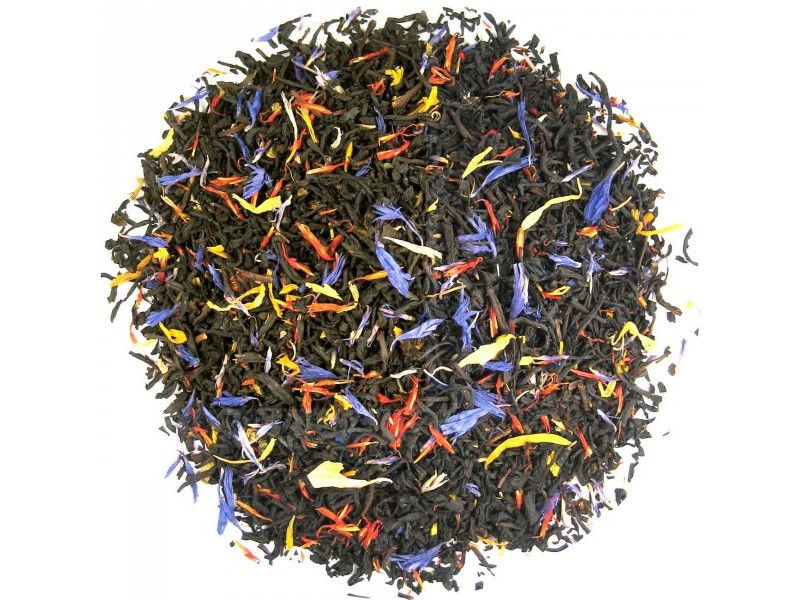 Zwarte thee, saffloerbloesem, korenbloembloesem, goudsbloembloesem, aroma.
